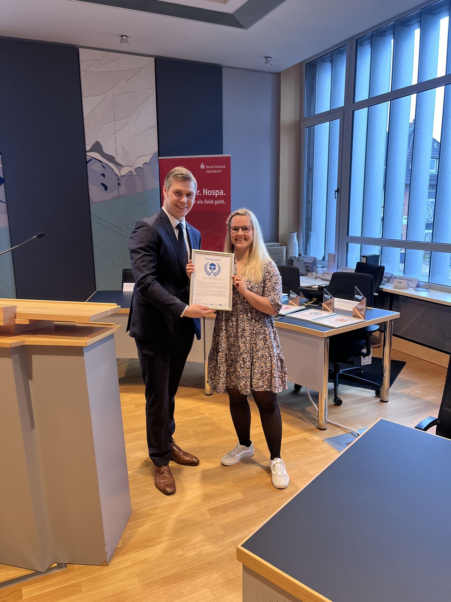 Ich möchte mich herzlich bedanken bei der Wirtschaftsförderung, dem Kreis Nordfriesland der Nord-Ostsee-Sparkasse und der IHK Flensburg für diese unglaublich tolle Möglichkeit, die mir unheimlich viel für die Zukunft mit auf den Weg bringen wird. Ich bin überwältigt und sehr dankbar.